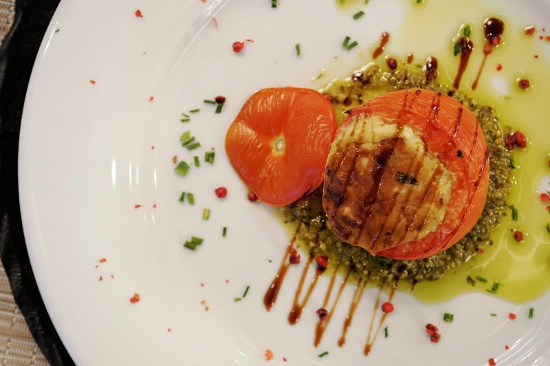 Poslužite toplo i uživajte u savršenom spoju rajčice, sira i mediteranskog pesta! Dobar tek!